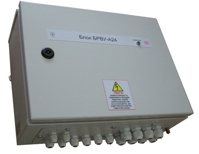 Блок БРВУ-А24 имеет 8 адресных реле: 4 слаботочных и 4 силовых. Четыре силовых реле дополнительно могут включаться замыканием внешних цепей, подключенных к блоку.