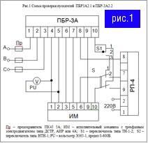 Проверку ПБР-3А2.2 проводить по схеме рис.1 по следующей методике: включить схему, перевести переключатель S1 в положение 1, выходной орган механизма должен прийти в движение, перевести переключатель S1 в положение 2, выходной орган механизма должен изменить направление вращения. Обесточить пускатель.